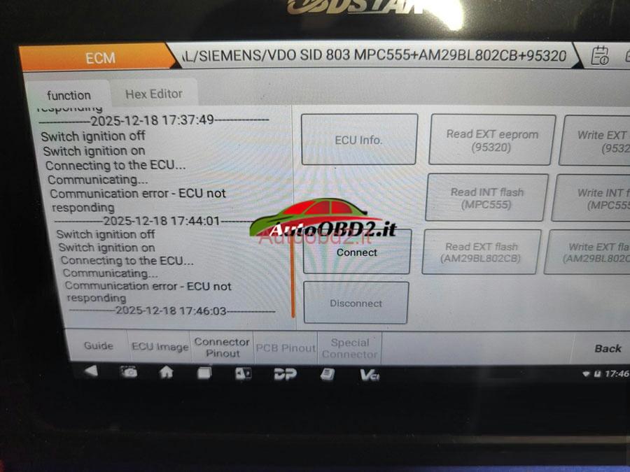 OBDSTAR DC706 non è Riuscito a Leggere la Centralina Volvo SID803 sulla Soluzione di Prova