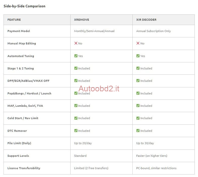 Scegli XIR Decoder se hai bisogno di una maggiore produttività e di un supporto tecnico più rapido, soprattutto per operazioni di chip tuning di grandi dimensioni.